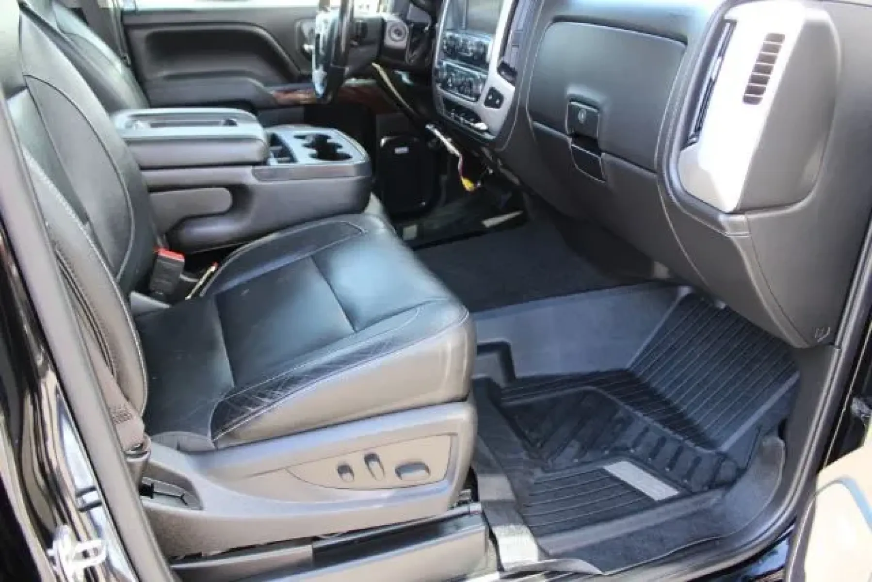 Inside, the Sierra 1500 is designed with comfort and convenience in mind. Sink into the luxurious leather seating, complete with multi-adjustable power settings and heated options for those chilly mornings. The spacious interior also features adjustable foot pedals, a leather steering wheel, and genuine wood trim that provides an elevated feel. For families, the child safety door locks and ample space in the back seat make it a safe choice for growing families on the move.