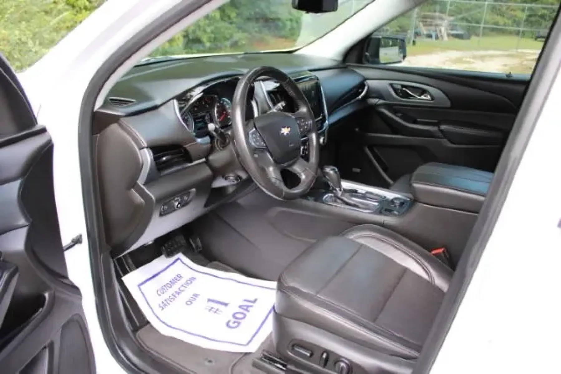 The exterior of this Traverse is finished in a striking Summit White, complemented by chrome accents and alloy wheels, giving it an eye-catching presence on the road. Practical features such as fog lights, daytime running lights, and deep-tinted glass add both style and functionality, making this vehicle stand out among other used cars near me. Plus, with a tow hitch receiver, you can easily bring along your trailer or boat for weekend adventures!